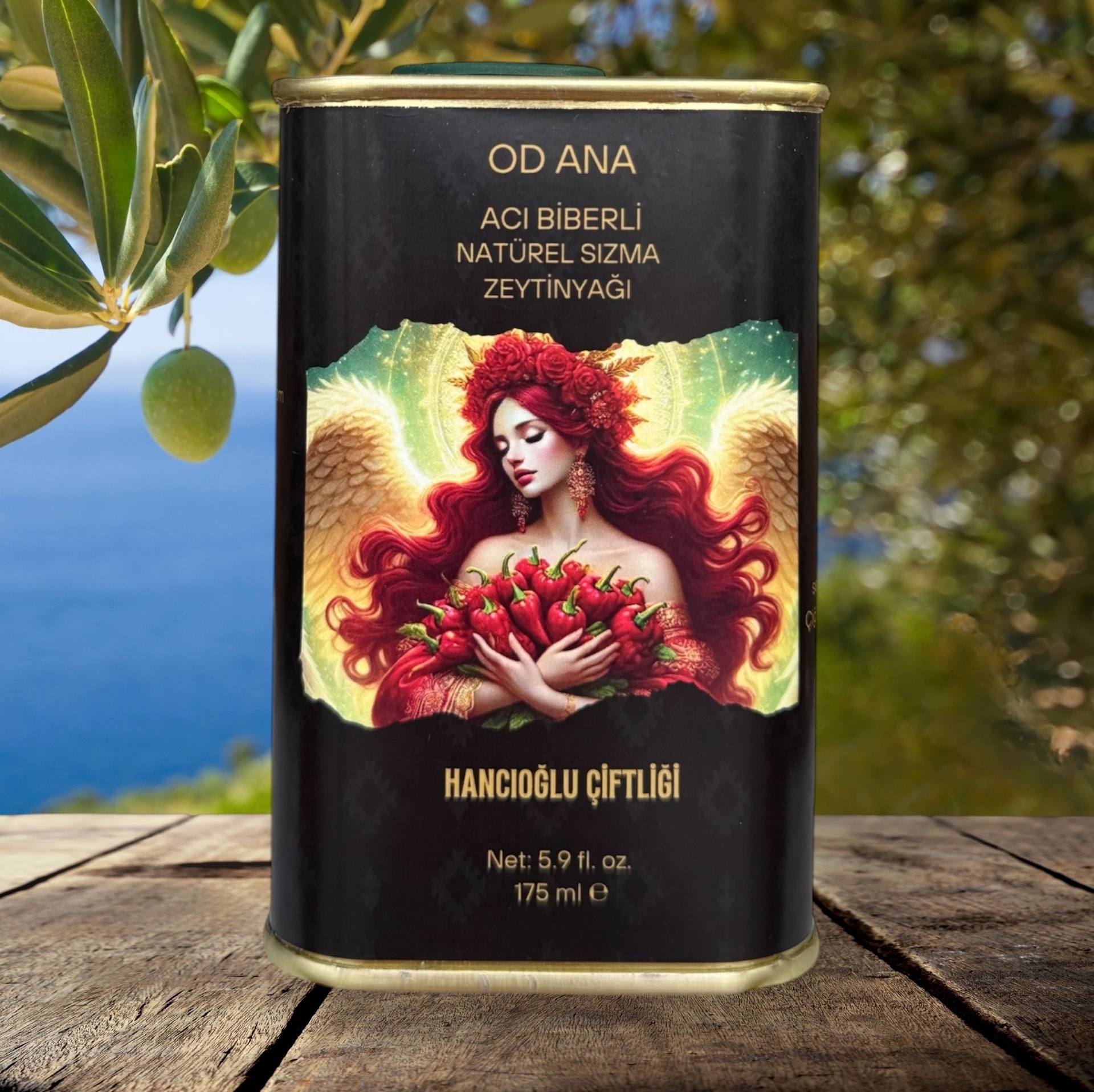 Türk mitolojisinde Od Ana, ateşin ve ocağın koruyucusudur. Acı biber ise ateşin yakıcı ve güçlü ruhunu yansıtır. Bu kadim hikayeyle buluşan acı biberli zeytinyağımız, lezzetine cesaret katmak isteyenler için hazırlandı. Her damlasında, Od Ana’nın ateşini hissetmeye hazır olun.